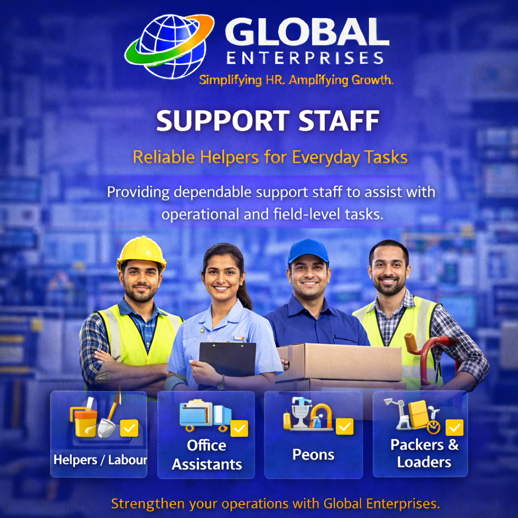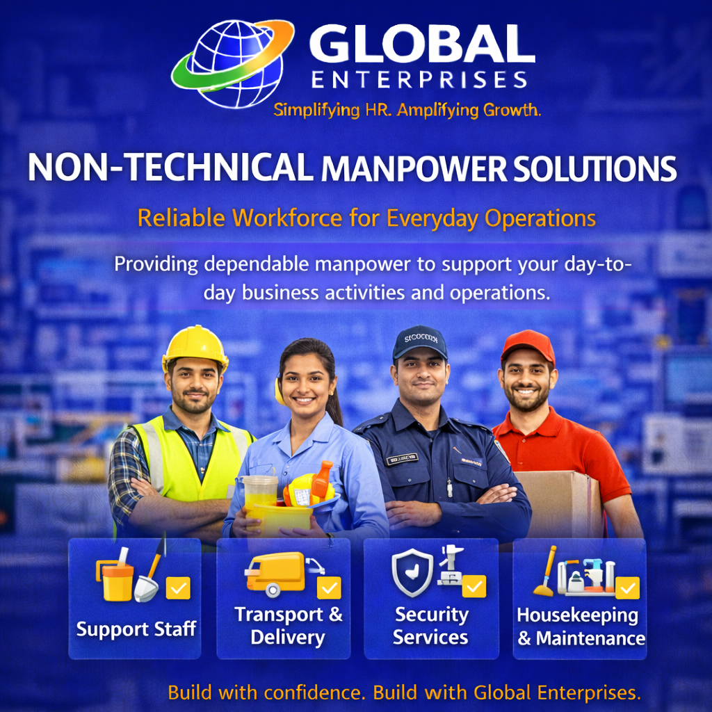 Providing dependable and efficient manpower to support your daily business activities and operations. Non-Technical Manpower includes workforce required for operational, support, and field-level roles that do not require specialized technical skills but are essential for smooth business functioning. At Global Enterprises, we provide trained and reliable non-technical staff to help businesses maintain efficiency, productivity, and operational continuity.